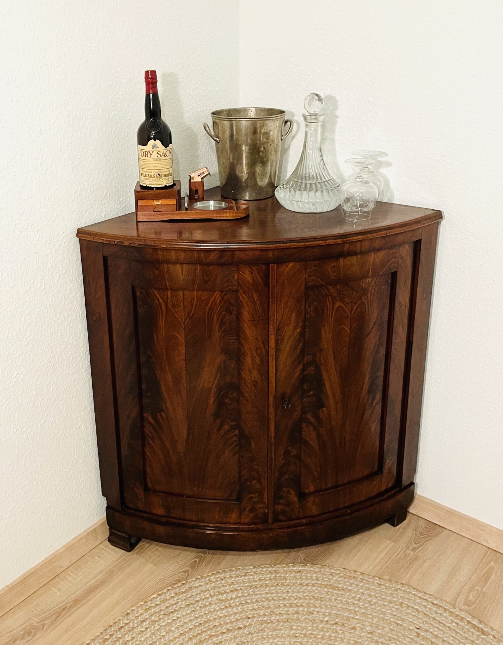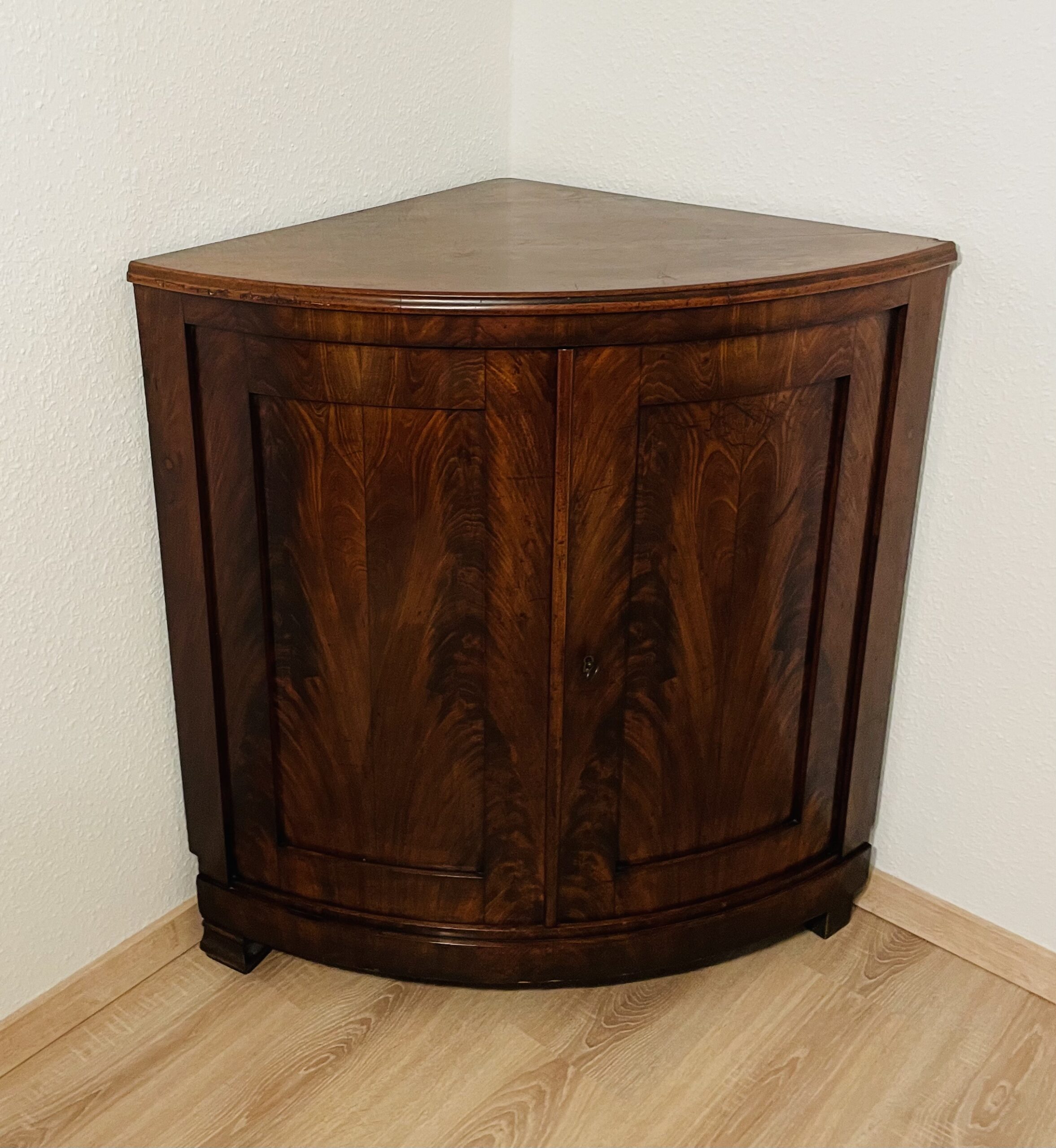Barschrank, Eckschrank, Biedermeier, 1840er, Mahagonifurnier, elegant, Augenweide mit Stil