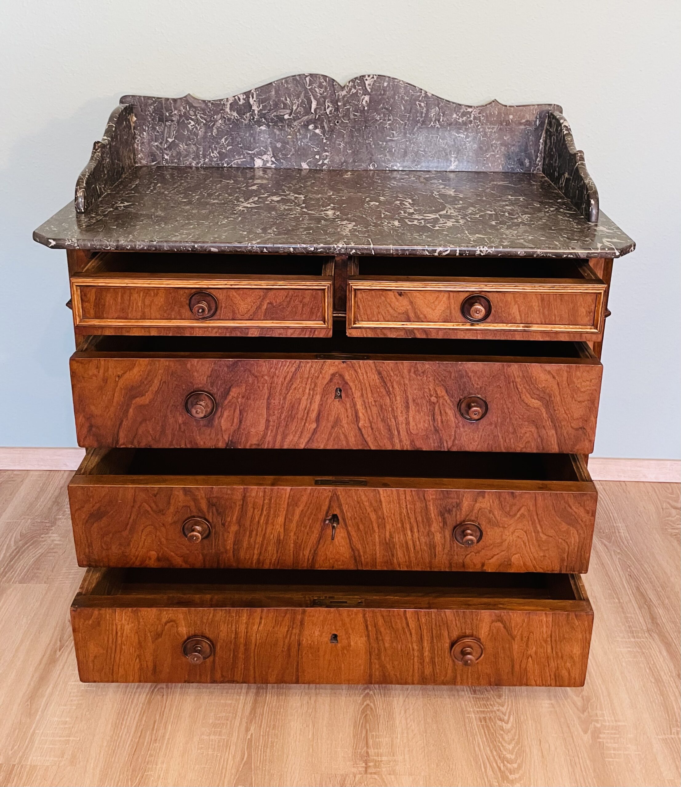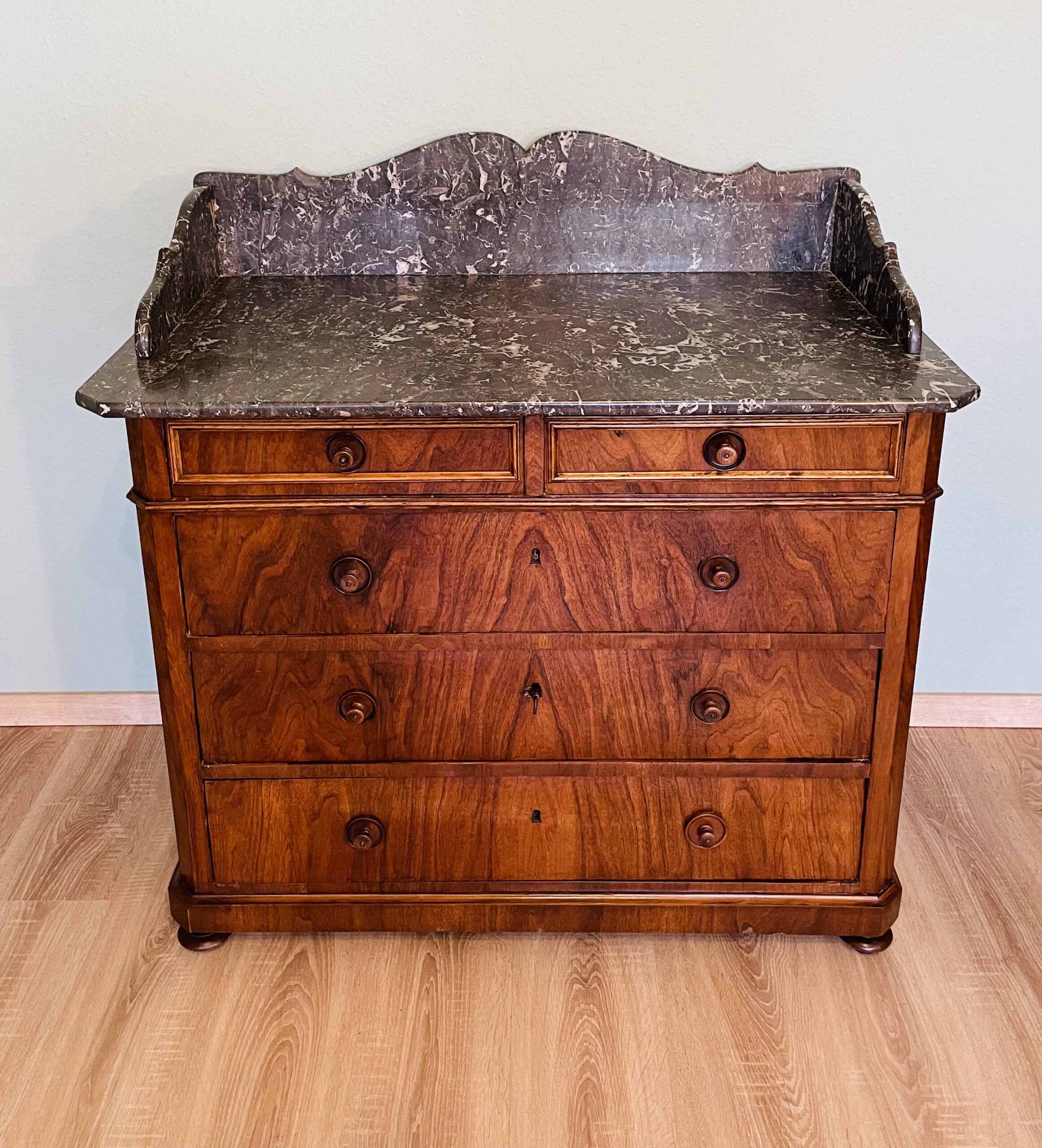 Kommode, antik, Gründerzeit, 1880er, Marmorplatte, Nussbaumfurnier, zeitlos, Hingucker