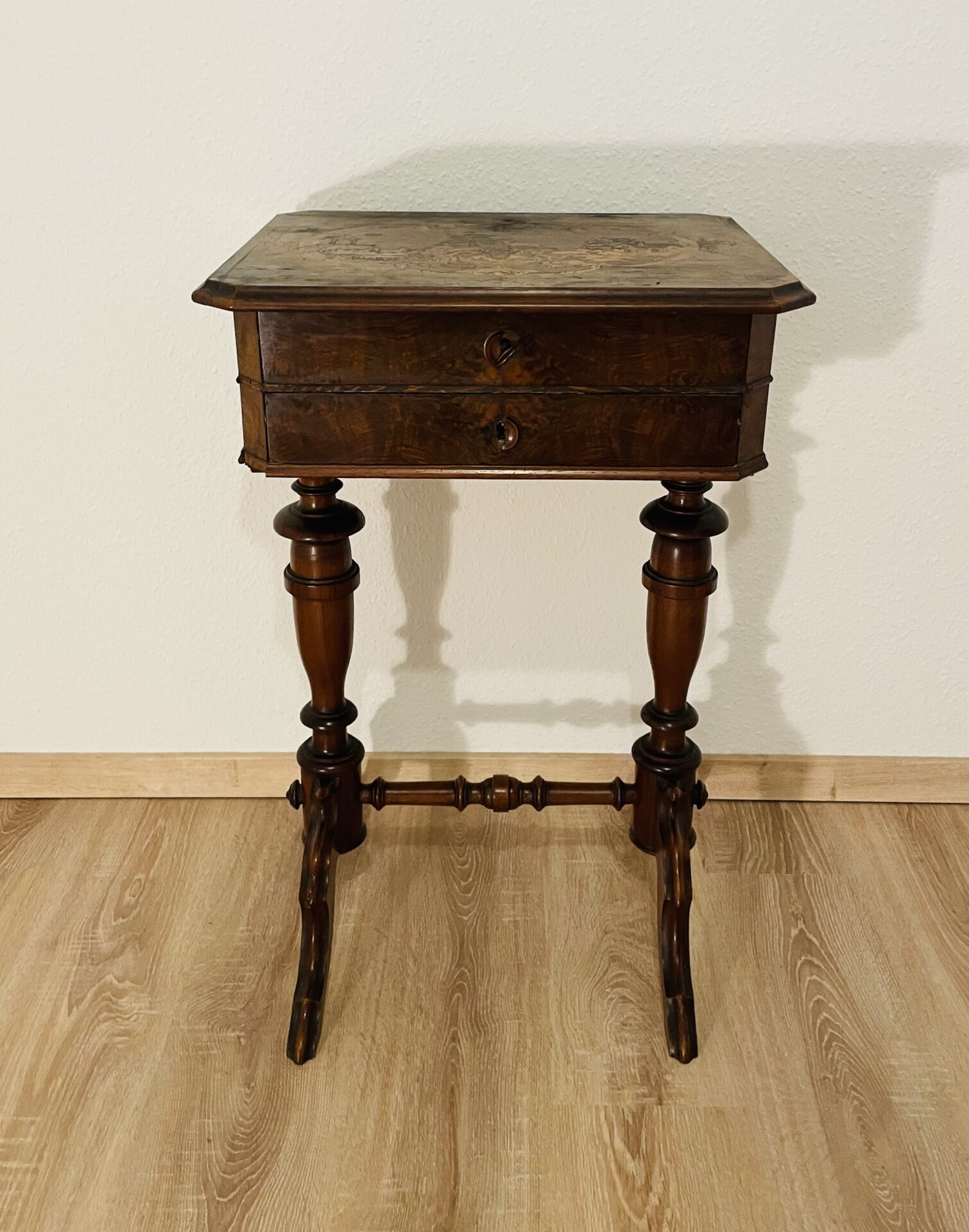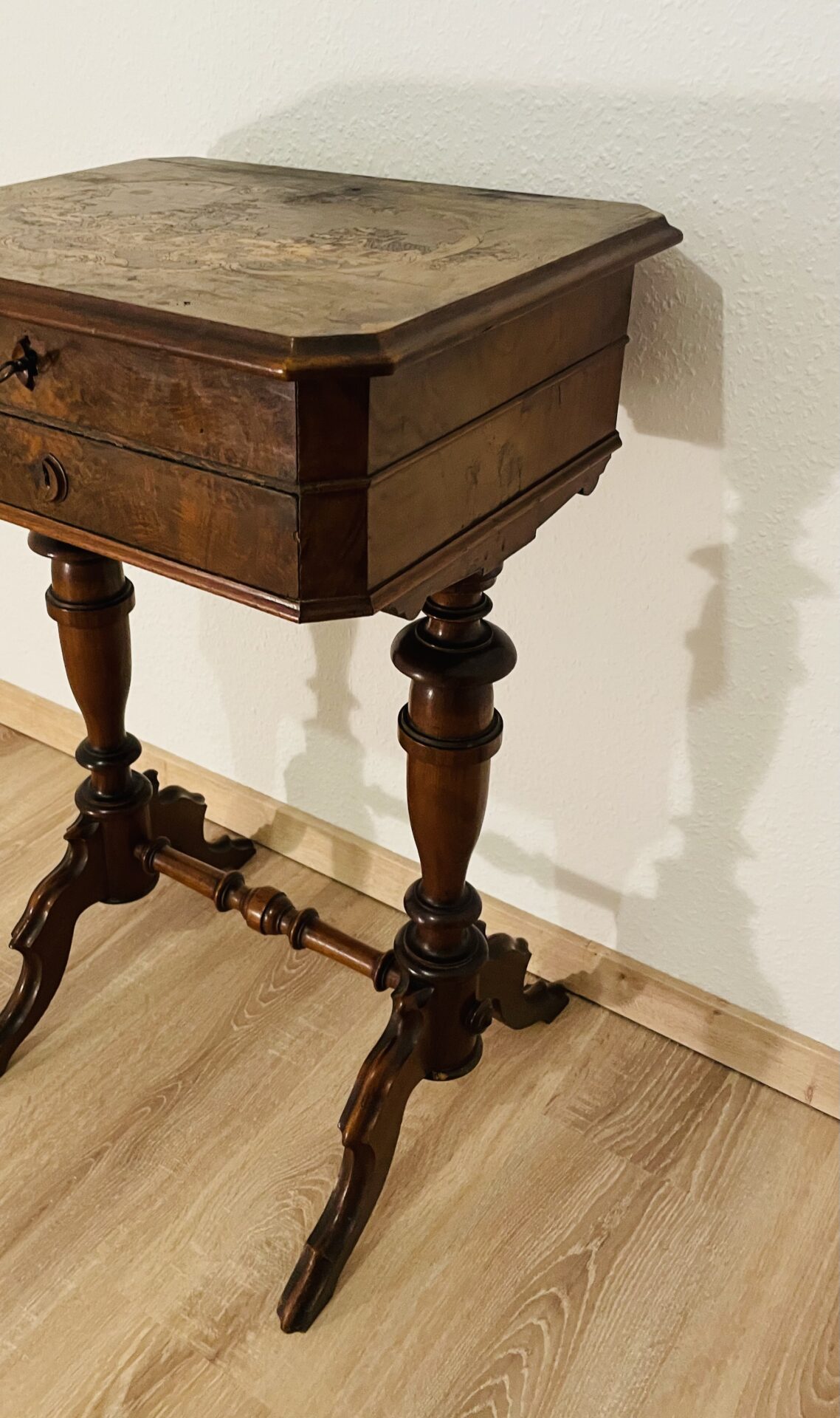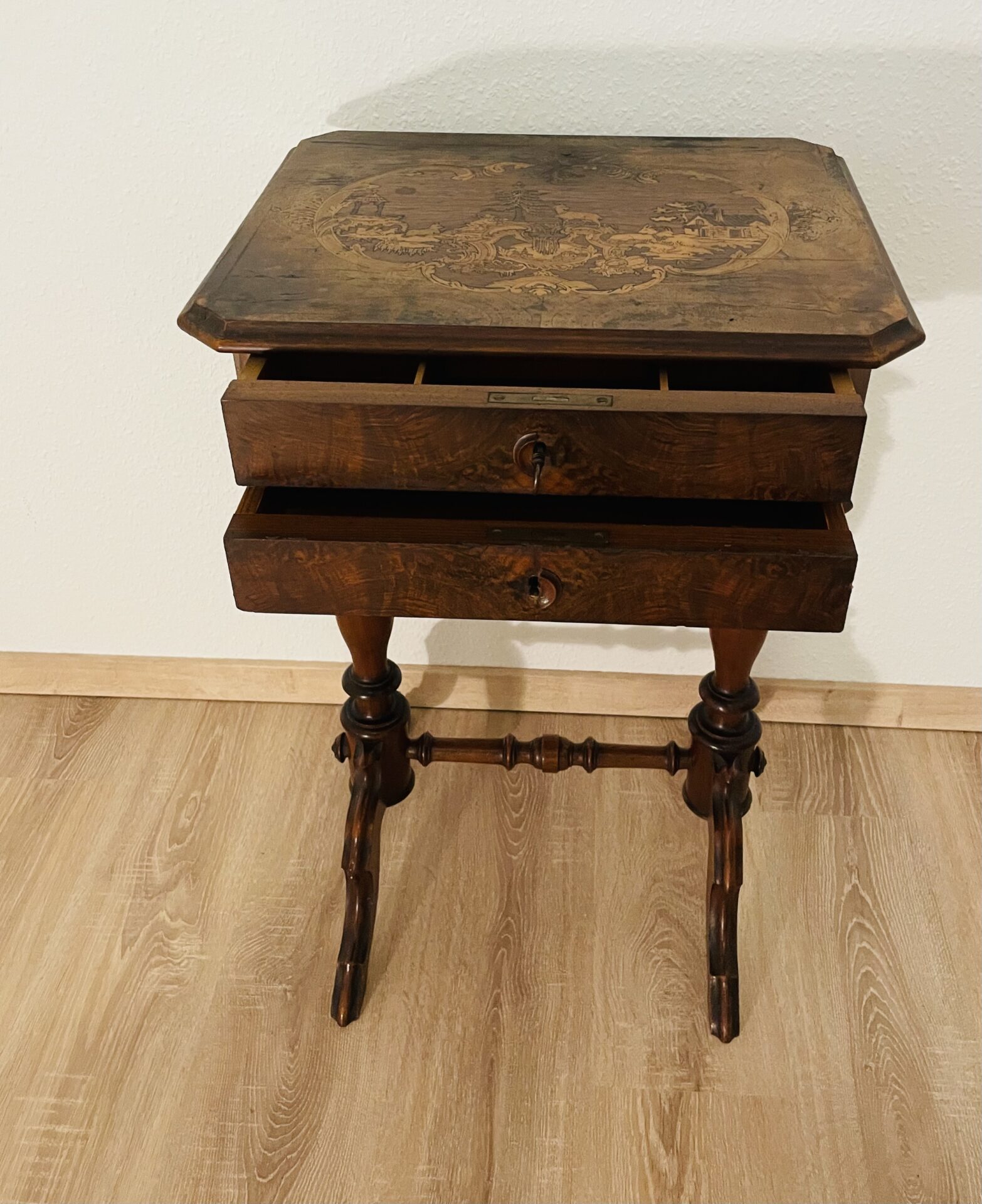 Nähtisch, Beistelltisch antik, 1890er, Gründerzeit, schöne Intarsien , Augenweide